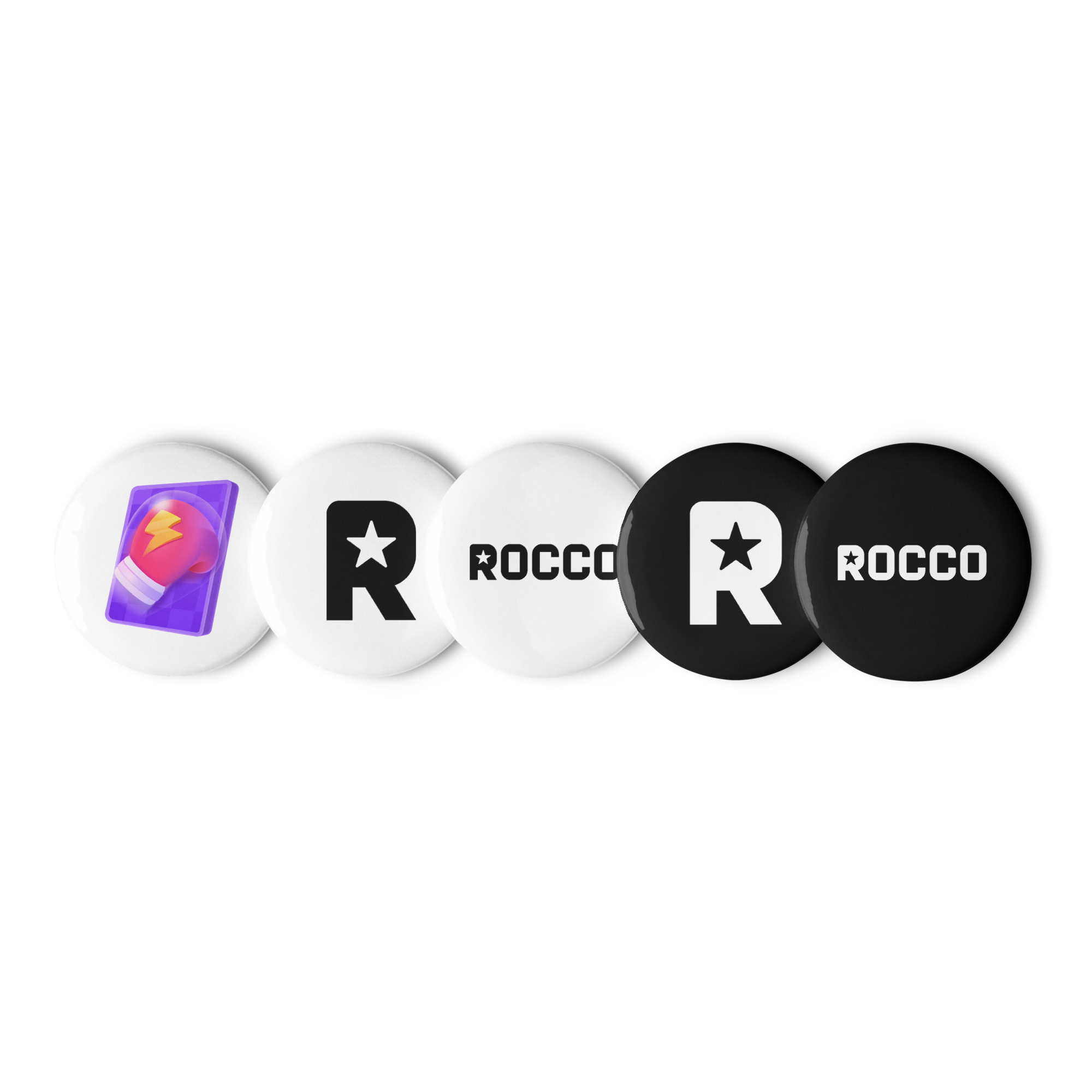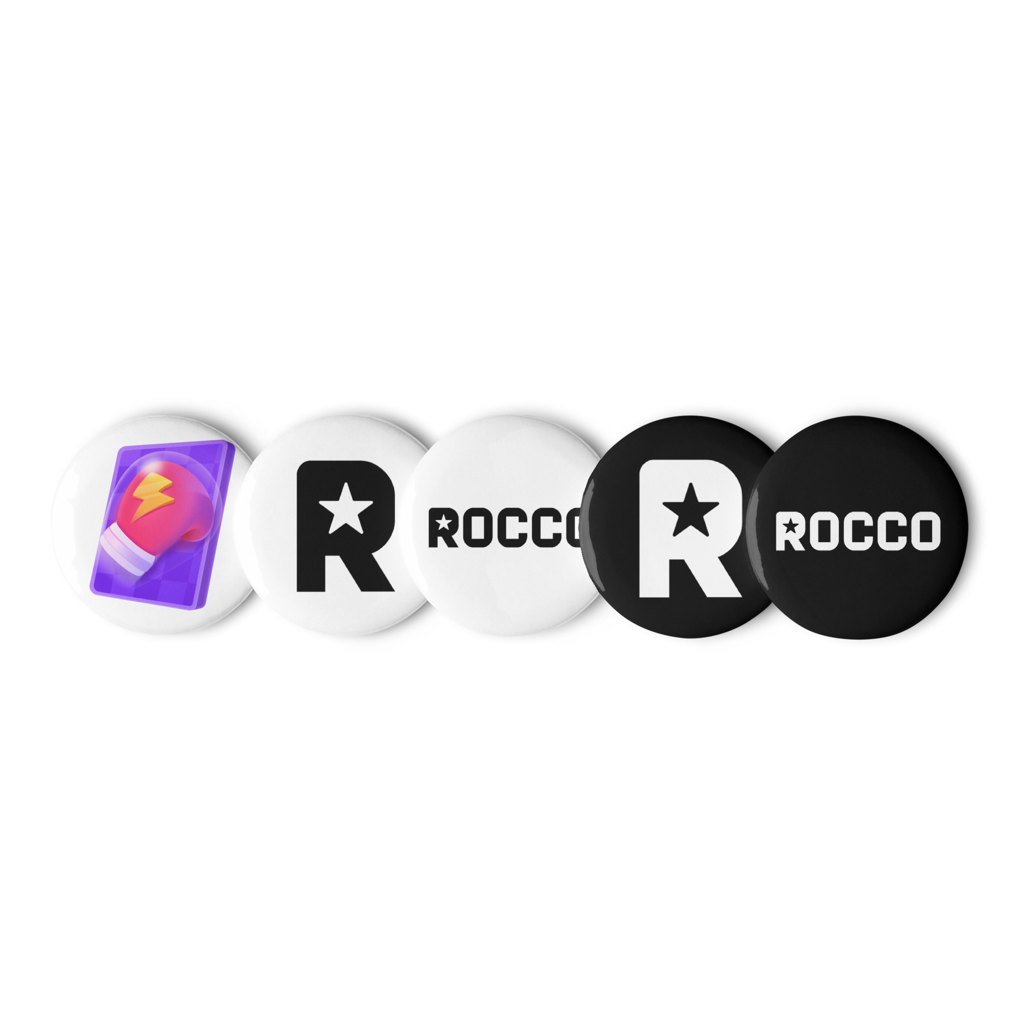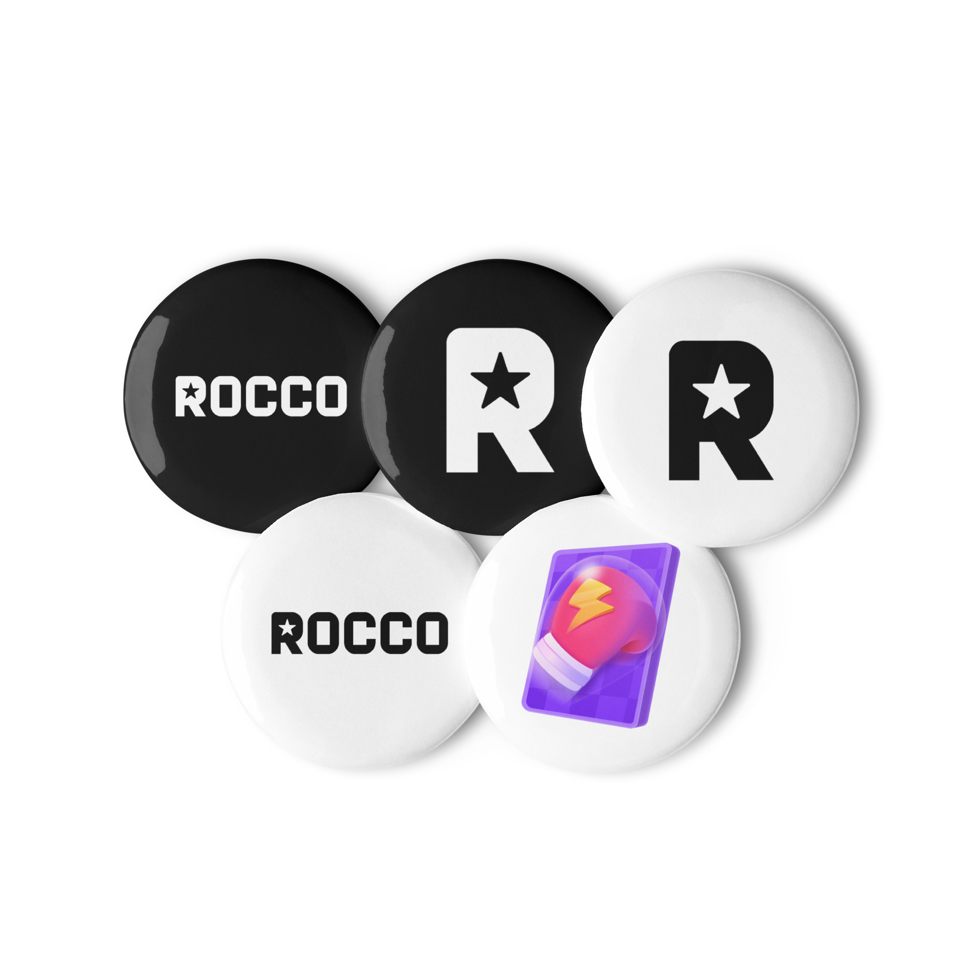 This exclusive 5-pack of high-gloss buttons lets you wear your status with pride — whether you’re backing the Rocco brand or flexing that TikTok Battle Glove. Clip them on your jacket, bag, hat, or streaming setup and let everyone know: you’re not just part of the culture — you are the moment.